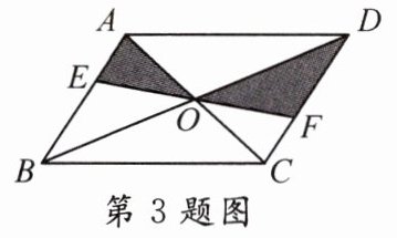 3. 如图,直线EF经过▱ABCD的对称中心O,且分别交AB、CD于点E、F。若▱ABCD的面积为8cm²,则图中阴影部分的面积为______cm²。