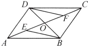 5. 如图,▱ABCD的对角线AC、BD相交于点O,点E、F在AC上,且AF = CE。求证:BE = DF。