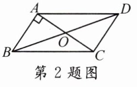 2. 如图,▱ABCD的对角线AC与BD相交于点O,且AB⊥AC,若AB = 4,AC = 6,则BD的长为( )
