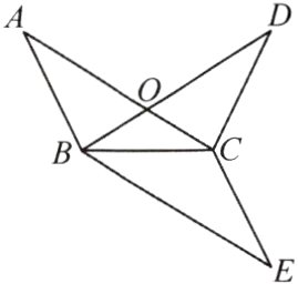 13. 如图,已知∠A = ∠D,AB = DC,AC、BD相交于点O.