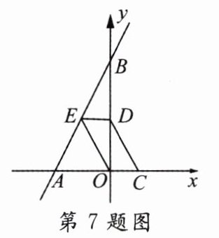 7. (葫芦岛中考)如图,直线y = 2x + 4与x轴交于点A,与y轴交于点B,点D为OB的中点,▱OCDE的顶点C在x轴上,顶点E在直线AB上,则▱OCDE的面积为______.