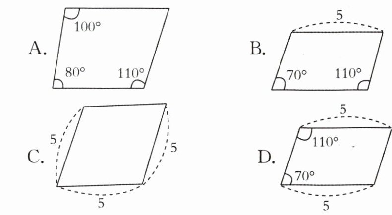 1. (河北中考)依据所标数据,下列一定为平行四边形的是( )