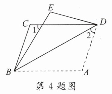 4. (大庆中考)如图,将平行四边形ABCD沿对角线BD折叠,使点A落在点E处.若∠1 = 56°,∠2 = 42°,则∠A的度数为( )