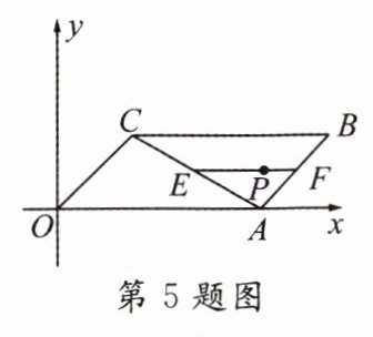 5. (日照中考)如图,在平面直角坐标系中,平行四边形OABC的顶点O在坐标原点,点E是对角线AC上一动点(不包含端点),过点E作EF//BC交AB于F,点P在线段EF上.若OA = 4,OC = 2,∠AOC = 45°,EP = 3PF,点P的横坐标为m,则m的取值范围是( )