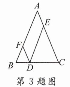 3. (宜宾中考)如图,在△ABC中,AB = AC = 5,D是BC上的点,DE//AB交AC于点E,DF//AC交AB于点F,那么四边形AEDF的周长是( )