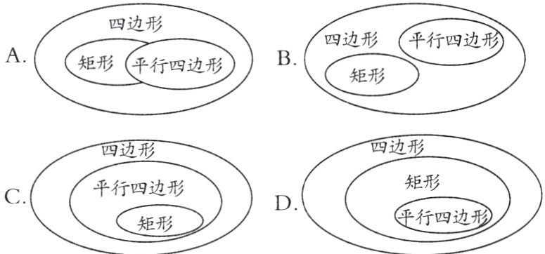 1.下列图形能够反映四边形、平行四边形、矩形的关系的是 ( )