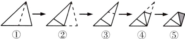 12.将一张三角形纸片按如图①至④折叠两次得到图⑤,然后剪出图⑤中的阴影部分,则阴影部分铺平后的图形是 ( )