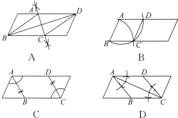 9.用尺规在一个平行四边形内作菱形ABCD,下列作法错误的是 ( )