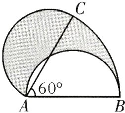 3.如图,半圆的直径为AB,AB=6cm,把整个半圆绕点A逆时针旋转60°,此时点B移到点C,则阴影部分的面积是多少?(5分)