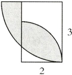 $3.14×(3^{2}+2^{2})÷4 - 3×2 = 4.205(cm^{2})$