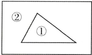 11. 如图,在长方形内画一个三角形,我们就说三角形把长方形分成了①、②两部分。