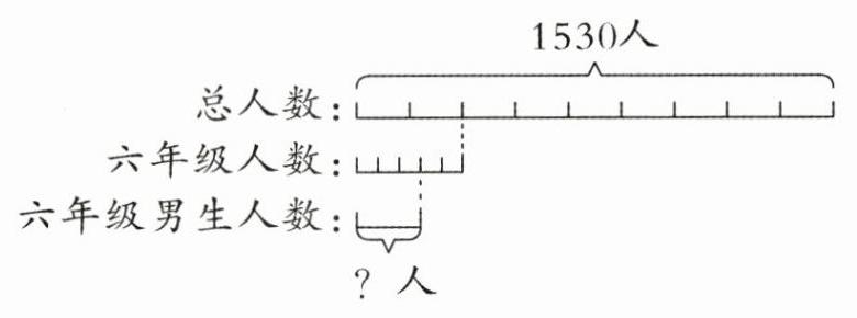 3.实验小学共有学生1530人,六年级学生占全校学生人数的$\frac{2}{9}$,六年级男生占全年级学生人数的$\frac{3}{5}$。六年级男生有多少人?(先画出线段图,再列式解答)(6分)
