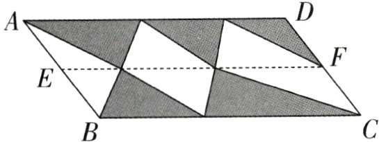 8.如图,平行四边形$ABCD$中,$AB = 10$厘米,$BC = 20$厘米,$BC$边上的高是8厘米。$EF$是$AD$和$BC$的平行线,图中阴影部分的面积是( )平方厘米。