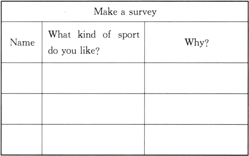 三、采访你周围的三名同学,调查大家喜欢的运动是什么,以及为什么喜欢这些运动。