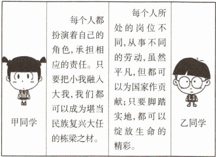 (3)①融入集体,担当大任。只有将小我融入大我,才能肩负起民族复兴的重任,实现个人价值与社会价值的统一。