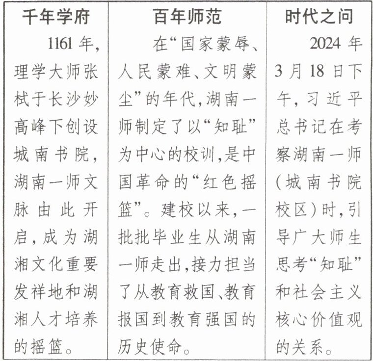 九年级学生陇陇,准备利用假期参观湖南第一师范学院(简称湖南一师),参观前,陇陇收集了相关资料,现邀请你共同完成下列探究活动。