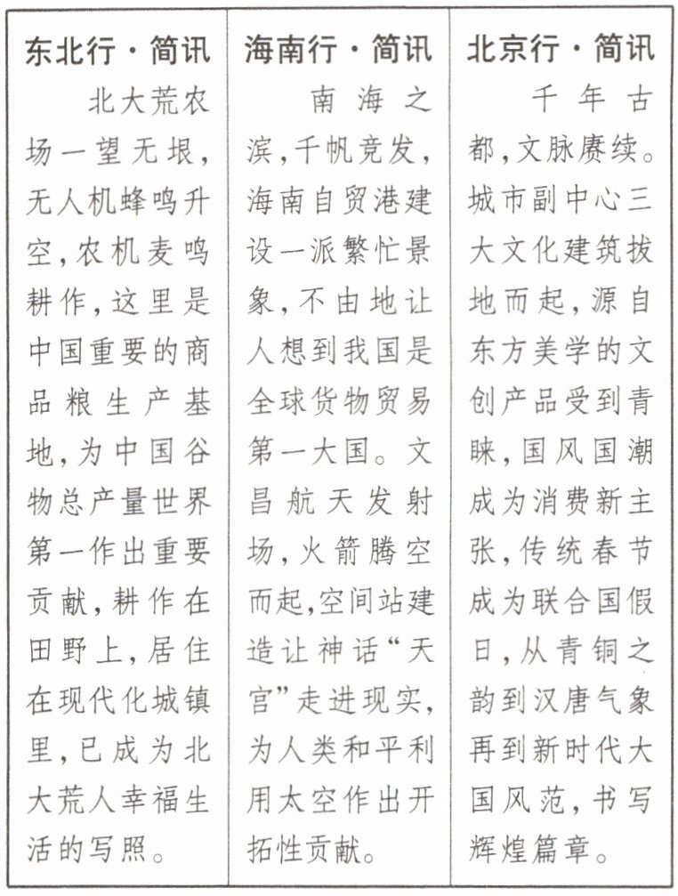 (1)任务一:运用所学知识,概括同学们的简讯反映出我国取得了哪些新发展。