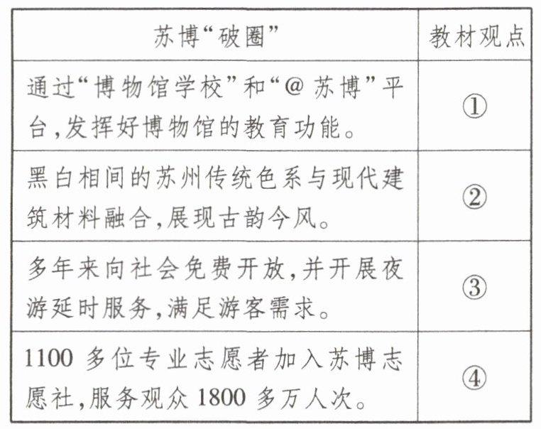 解码苏博“破圈”发展的做法,完成上述表格。