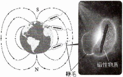 8.【跨学科融合】荷兰科学家辛斯伯根发现:在欧洲大陆下“藏着”一块1亿多年前的“大阿德里亚”大陆。他是怎么找到这块大陆的呢?原来一些原始的磁细菌在细胞内会产生磁性物质,其磁极指向受地磁场影响,如图所示。磁细菌死后,留下的磁性物质与周围沉积物一起形成岩石。科学家根据地磁信息,就能还原出该岩石在地球上曾经所处的位置。从细胞结构看,磁细菌的细胞内没有成形的细胞核,因此它属于原核生物。