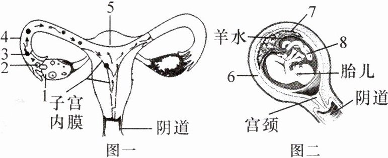 (2)图二中,胎儿在[ ]______内发育,并通过脐带和[ ]______从母体获得营养物质和氧气。