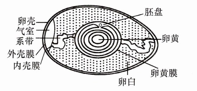 4.(2023·黔东南州)鸟卵是鸟类的重要特征之一。在鸟卵的结构中,将来能发育成雏鸟的部分是( )
