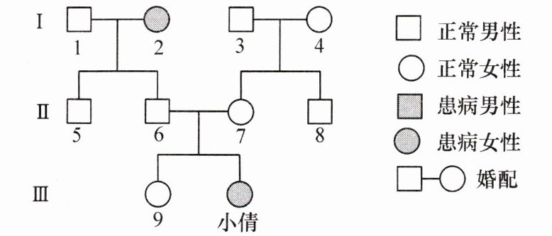 (1)小倩的父母都表现正常,而小倩患病 X染色体