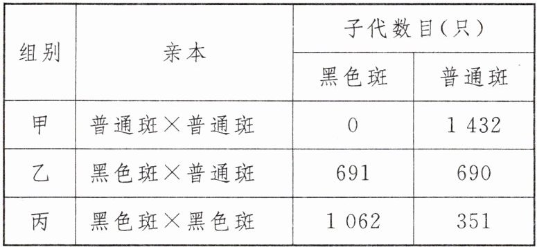 B. 根据上表甲组实验数据推断,普通斑是显性性状