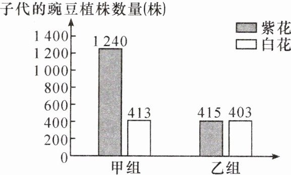 (2)甲组子代中,紫花1240株,白花413株,紫花与白花比例接近3∶1,由此推测显性性状为________。