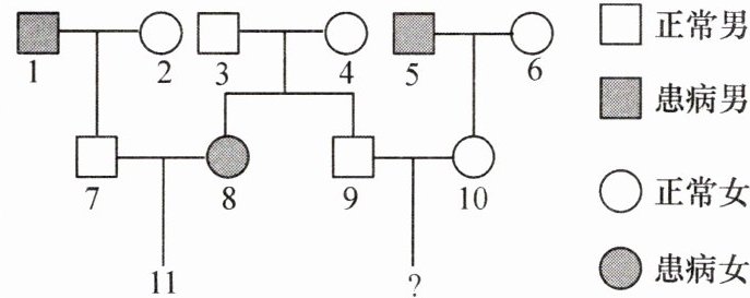 D. 个体9、10生的第一个孩子患病的概率为1/12