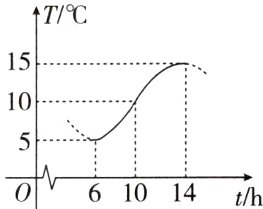解析 从题图中可以看出,从 6~14 时的图象是函数$y = A\sin(\omega x+\varphi)+B$的半个周期,则$\begin{cases}A + B = 15,\\-A + B = 5,\end{cases}$所以$A=\frac{1}{2}\times(15 - 5)=5,B=\frac{1}{2}\times(15 + 5)=10$. 又$\frac{1}{2}\times\frac{2\pi}{\omega}=14 - 6$,所以$\omega=\frac{\pi}{8}$. 又$\frac{\pi}{8}\times10+\varphi=2\pi+2k\pi,k\in\mathbf{Z},0<\varphi<\pi$,所以$\varphi=\frac{3\pi}{4}$,所以$y = 5\sin(\frac{\pi}{8}x+\frac{3\pi}{4})+10,x\in[6,14]$.