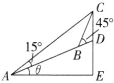 3. 如图所示,在坡度一定的山坡A处测得山顶上一建筑物CD的顶端C对于山坡的斜度为15°,向山顶前进100 m到达B处,又测得C对于山坡的斜度为45°,若CD = 50 m,山坡对于地平面的坡角为θ,则cosθ = ( )