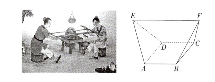 例8 (2023·安徽合肥一中期末)木楔子在传统木工中运用广泛,它使得榫卯配合的牢度得到最大化满足,是一种简单的机械工具,是用于填充器物的空隙使其牢固的木橛、木片等. 如图为一个木楔子的直观图,其中四边形ABCD是边长为1的正方形,且△ADE,△BCF均为正三角形,EF//CD,EF = 2,则该木楔子的体积为 ( )