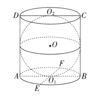 7. (2024·江苏苏州校考阶段练习)传说古希腊数学家阿基米德的墓碑上刻着一个圆柱,圆柱内有一个内切球,这个球的直径恰好与圆柱的高相等,如图是一个圆柱容球,O₁,O₂为圆柱两个底面的圆心,O为球心,EF为底面圆O₁的一条直径,若球的半径R = 2,则