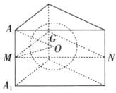 解析 过侧棱的中点作正三棱柱的截面,如图所示,则球心为△MNG的中心。