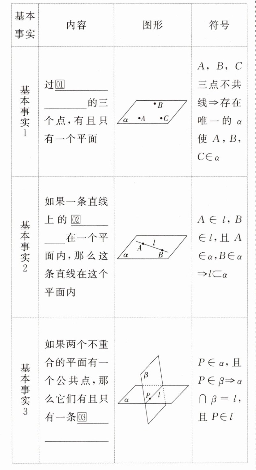 1.不在一条直线上 2.两个点 3.过该点的公共直线