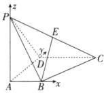 由E为棱PC的中点,得E(1,1,1)。