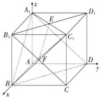 (1),得$B_1(2,0,2)$,$\overrightarrow{B_1F}=(0,1, - 1)$,