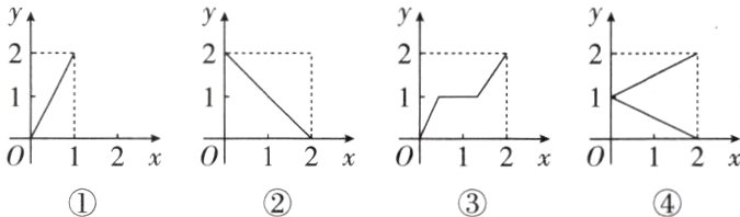 例1 (1)设集合$M = \{ x|0\leqslant x\leqslant 2\}$,$N = \{ y|0\leqslant y\leqslant 2\}$,那么下列四个图象中,能表示集合$M$到集合$N$的函数关系的是 ( )