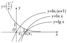(2)设$x_{1},x_{2},x_{3}$均为实数,且$\mathrm{e}^{-x_{1}}=\ln x_{1}$,$\mathrm{e}^{-x_{2}}=\ln(x_{2}+1)$,$\mathrm{e}^{-x_{3}}=\lg x_{3}$,则 ( )