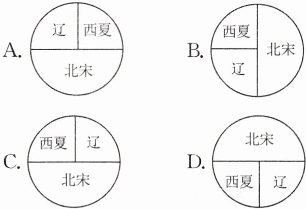 7. 下列有关辽、西夏、北宋的大致位置示意图,正确的是( )
