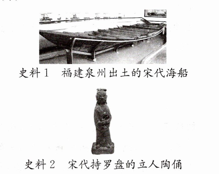 材料二 两宋时期,我国经济重心已经移至江南地区。……其显而易见的好处是由于出口商品生产基地更加靠近东南沿海港口而节省了运输和交易成本,为规模性海外贸易的成长提供了难得的历史机遇。在北宋中叶煤炭革命的带动下,冶金、陶瓷、纺织、造纸等各部门技术变革日新月异,分工不断深化,产出能力显著提升……宋代远洋海船载重量大,设计科学,性能优良。正是依赖200吨以上的大型商船,中国海商组建庞大商队,10世纪以后,逐渐取代阿拉伯商人在海上贸易中独占鳌头。领先于世界的造船与航海技术的威力在国际贸易竞争中开始显现。