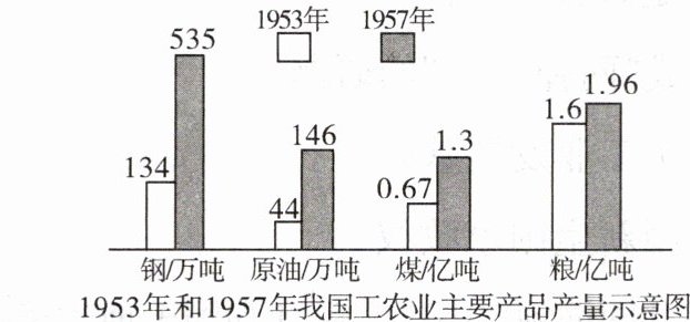 5. 下图为新中国成立初期我国主要工业品产量变化柱状图。其中数据变化的主要原因是( )