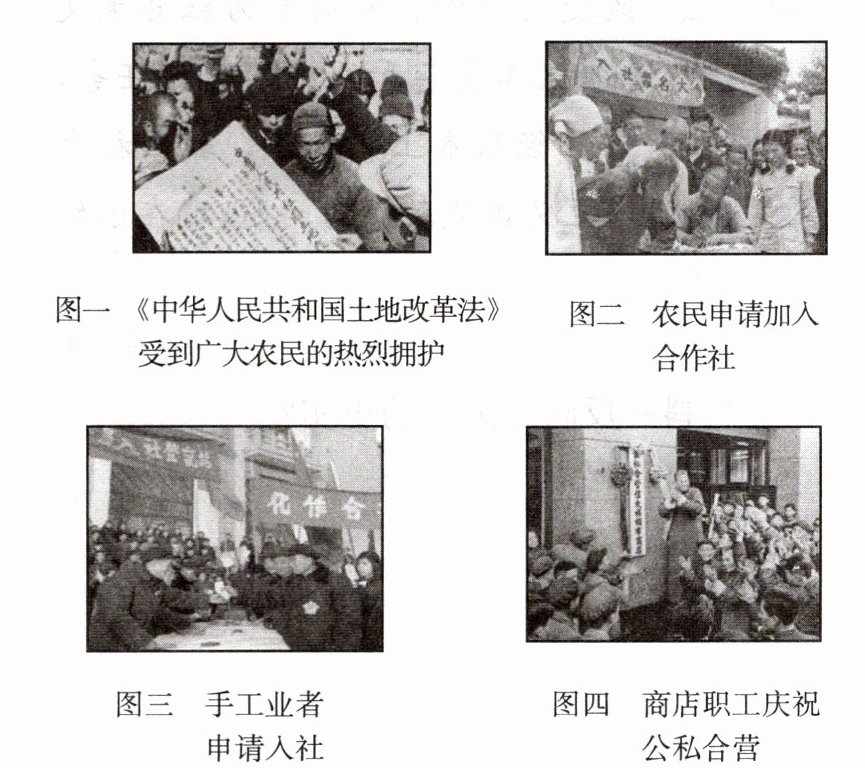 (1)事件:1950—1952年的土地改革。土地改革废除了地主阶级的土地所有制,实行农民的土地所有制,农民成为土地的主人。