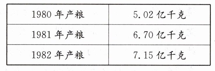 材料一 到1979年,集体农业活动的组织方面正发生一场意义更为深刻的变化。在中国最贫困的省份,特别是安徽,中国领导阶层开始了叫“生产责任制”的某些尝试……责任进一步下放到家庭中……到1983年底,几乎全部农业生产都是以家庭为基础的。