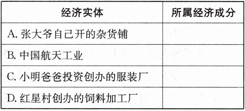 (1)结合自己在生活中的观察,写出下列经济实体所属的经济成分。