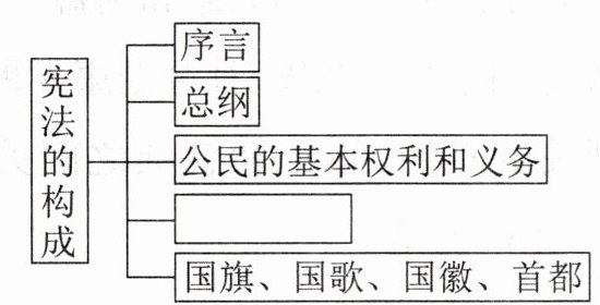 1. 我国现行宪法除序言外,共四章一百四十三条。如下图所示,方框内应该填写的内容是 ( )