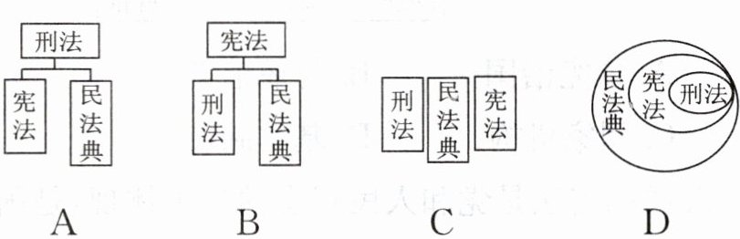 3. 下列关于刑法、宪法、民法典之间关系的图示中,正确的是 ( )