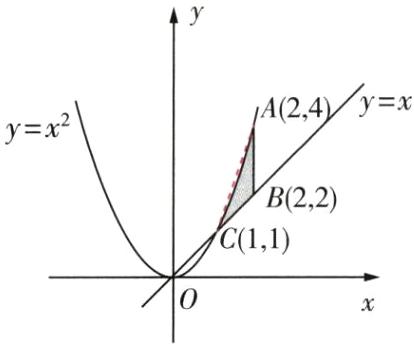 设$f(t)=x+(x^{2}-x)t$,当$x = 1$时,$f(t)=1$;当$1 < x\leqslant2$时,$x^{2}-x>0$,所以$f(t)$单调递增,所以当$0\leqslant t\leqslant1$时,$f(0)\leqslant f(t)\leqslant f(1)$,即$x\leqslant f(t)\leqslant x^{2}$,则集合M表示的区域如图中阴影部分所示.(难点:画出平面区域)