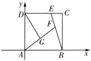 则$A(0,0),B(1,0),C(1,1),D(0,1),E(\frac {2}{3},1)$,所以$\overrightarrow {BE}=(-\frac {1}{3},1),\overrightarrow {BA}=(-1,0),\overrightarrow {BC}=(0,1)$,因为$\overrightarrow {BE}=\lambda \overrightarrow {BA}+\mu \overrightarrow {BC}$,所以$(-\frac {1}{3},1)=\lambda (-1,0)+\mu (0,1)$,所以$\lambda =\frac {1}{3},\mu =1$,所以$\lambda +\mu =\frac {4}{3}$.由$B(1,0),E(\frac {2}{3},1)$可得直线BE的方程为$y=-3(x - 1)$,设$F(a,3 - 3a)(\frac {2}{3}≤a≤1)$,则$G(\frac {a}{2},\frac {3 - 3a}{2})$,所以$\overrightarrow {AF}=(a,3 - 3a),\overrightarrow {DG}=(\frac {a}{2},\frac {1 - 3a}{2})$,所以$\overrightarrow {AF}\cdot \overrightarrow {DG}=a\cdot \frac {a}{2}+(3 - 3a)\cdot \frac {1 - 3a}{2}=5a^{2}-6a+\frac {3}{2}=5(a-\frac {3}{5})^{2}-\frac {3}{10}$,所以当$a=\frac {2}{3}$时,$\overrightarrow {AF}\cdot \overrightarrow {DG}$取得最小值,为$-\frac {5}{18}.$