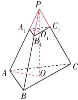 7.B 正三棱台的体积 + 线面角 补形法 设正三棱台$ABC - A_{1}B_{1}C_{1}$的高为$h$,三条侧棱延长后交于一点$P$,作$PO\perp$平面$ABC$于点$O$,$PO$交平面$A_{1}B_{1}C_{1}$于点$O_{1}$,连接$OA$,$O_{1}A_{1}$,如图所示。由$AB = 3A_{1}B_{1}$,可得$PO_{1}=\frac{1}{2}h$,$PO=\frac{3}{2}h$,又$S_{\triangle A_{1}B_{1}C_{1}}=\frac{1}{2}\times2^{2}\times\frac{\sqrt{3}}{2}=\sqrt{3}$,$S_{\triangle ABC}=\frac{1}{2}\times6^{2}\times\frac{\sqrt{3}}{2}=9\sqrt{3}$,所以正三棱台$ABC - A_{1}B_{1}C_{1}$的体积$V = V_{P - ABC}-V_{P - A_{1}B_{1}C_{1}}=\frac{1}{3}\times9\sqrt{3}\times\frac{3}{2}h-\frac{1}{3}\times\sqrt{3}\times\frac{1}{2}h=\frac{52}{3}$,解得$h=\frac{4\sqrt{3}}{3}$,故$PO=\frac{3}{2}h = 2\sqrt{3}$。由正三棱台的性质可知,$O$为底面$ABC$的中心,则$OA=\frac{2}{3}\times\sqrt{6^{2}-3^{2}}=2\sqrt{3}$,因为$PO\perp$平面$ABC$,所以$\angle PAO$是$A_{1}A$与平面$ABC$所成的角,在$Rt\triangle PAO$中,$\tan\angle PAO=\frac{PO}{OA}=1$,故选 B。